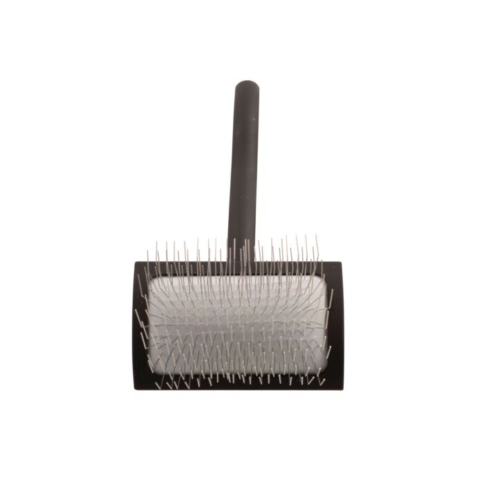 Na gebruik: verwijder haren uit de pinnetjes; afspoelen of reinigen met lauwwarm water en milde shampoo indien nodig. Goed laten drogen om roest of aantasting van het metaal te voorkomen. Bewaar de borstel op een droge plek, bij voorkeur schoon en beschermd, zodat de pinnetjes niet buigen of beschadigen.