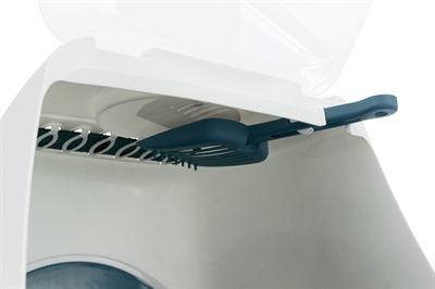 Dit handige kattentoilet maakt de kattenbak verschonen kinderspel. Deze kattenbak is voorzien van een opklapbaar gedeelte aan de voorzijde, wat schoonmaken makkelijker maakt. De bak is daarnaast voorzien van een schepje en een filter van actieve koolstof, die nare luchtjes filtert en zorgt dat de omgeving van de bak fris blijft ruiken. De kattenbak heeft een blauwgrijze onderbak met een witte kap, met transparante voorzijde. Door de Easy-Click sluitingen zijn de delen gemakkelijk van elkaar los te maken.